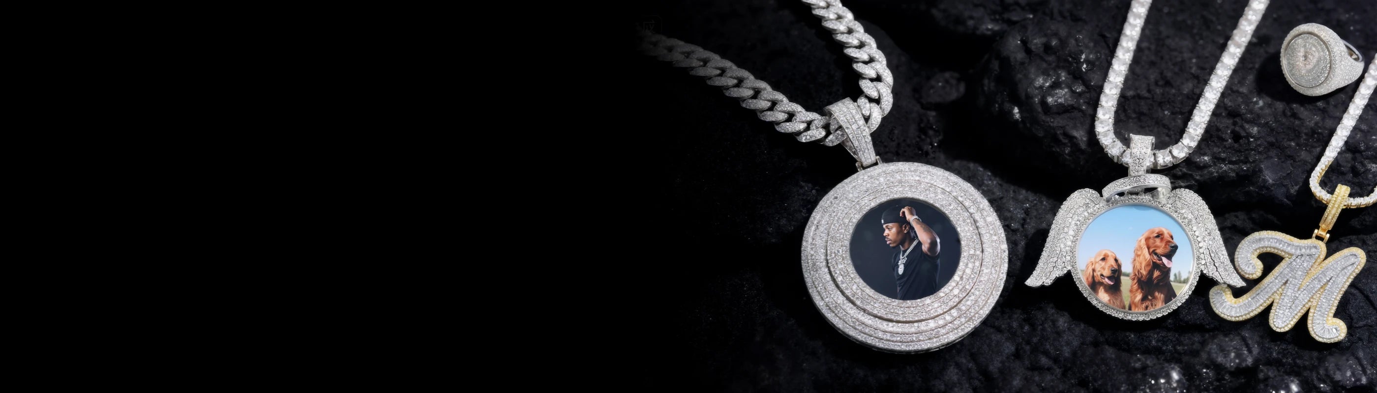 Wheat Ear Round Custom Photo Pendant - Personalized Iced Necklace